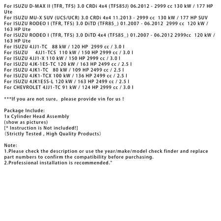 01.2007-06.2012 ISUZU RODEO I (TFR, TFS) 3.0 DiTD 4x4 (TFS85_) 完成シリンダーヘッド 4JJ1-TC 4JK1-TC