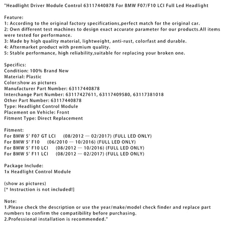ヘッドライト ドライバー モジュール コントロール 63117440878 BMW F07/F10 LCI フル LED ヘッドライトに適合