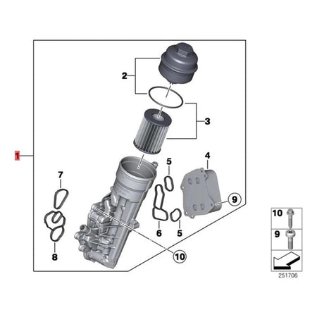 オイルクーラーフィルターハウジング(オイルクーラー付き)×1