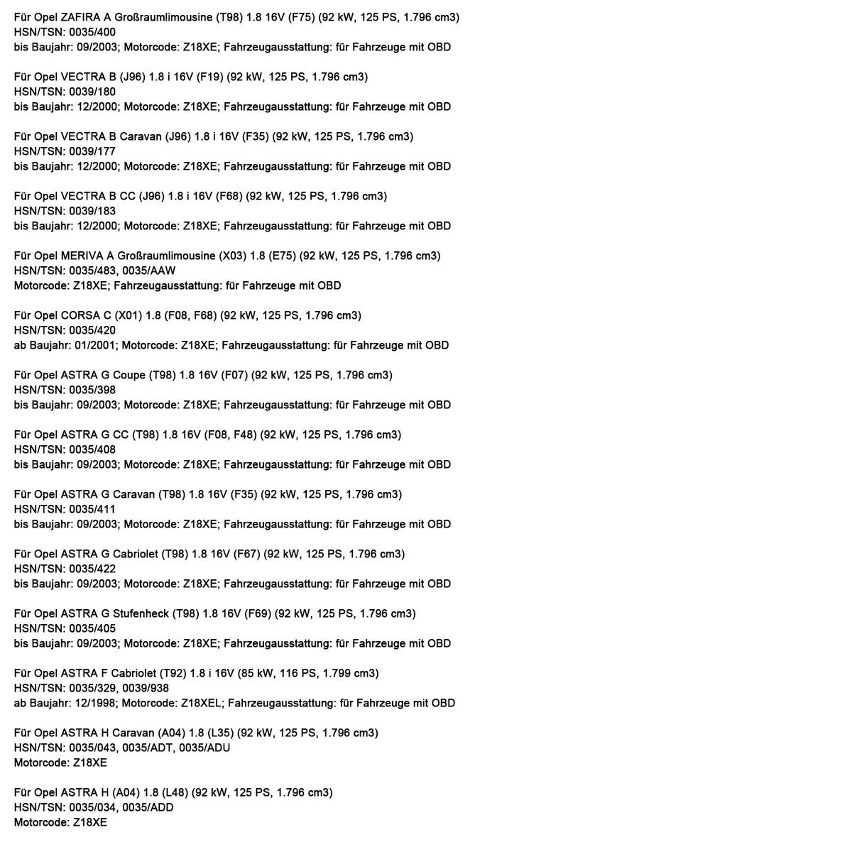 製造年:2000年12月まで;エンジンコード:Z18XE;車両装備:OBD搭載車用