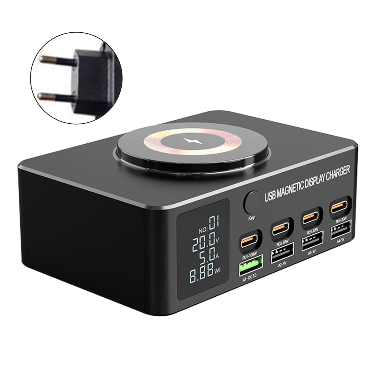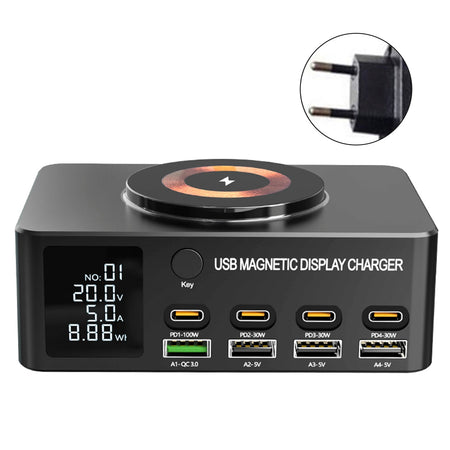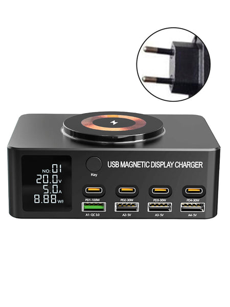 1.140Wデスクトップ充電器、携帯電話/ラップトップ用ユニバーサル、PD急速充電100W、急速充電/デジタルディスプレイ/磁気ワイヤレス充電