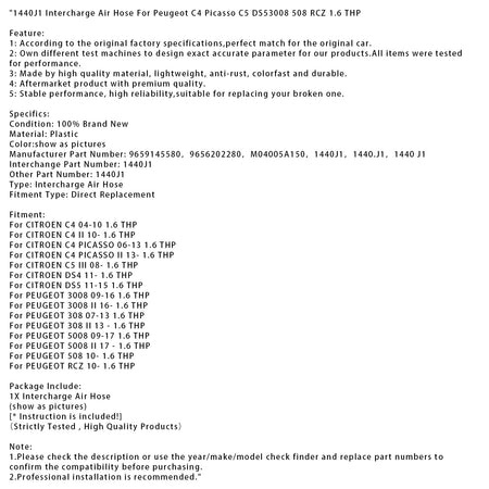 1440J1 インターチャージエアホース プジョー C4 ピカソ C5 DS53008 508 RCZ 1.6 THP用