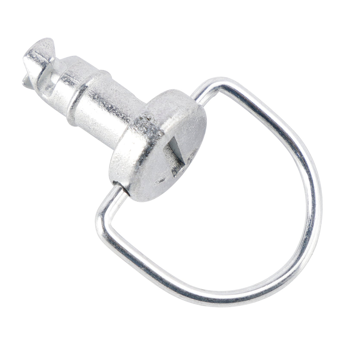 ステンレススチール製の D リングと亜鉛合金製のネジ、スチール製のスライド式のカウンターパート。