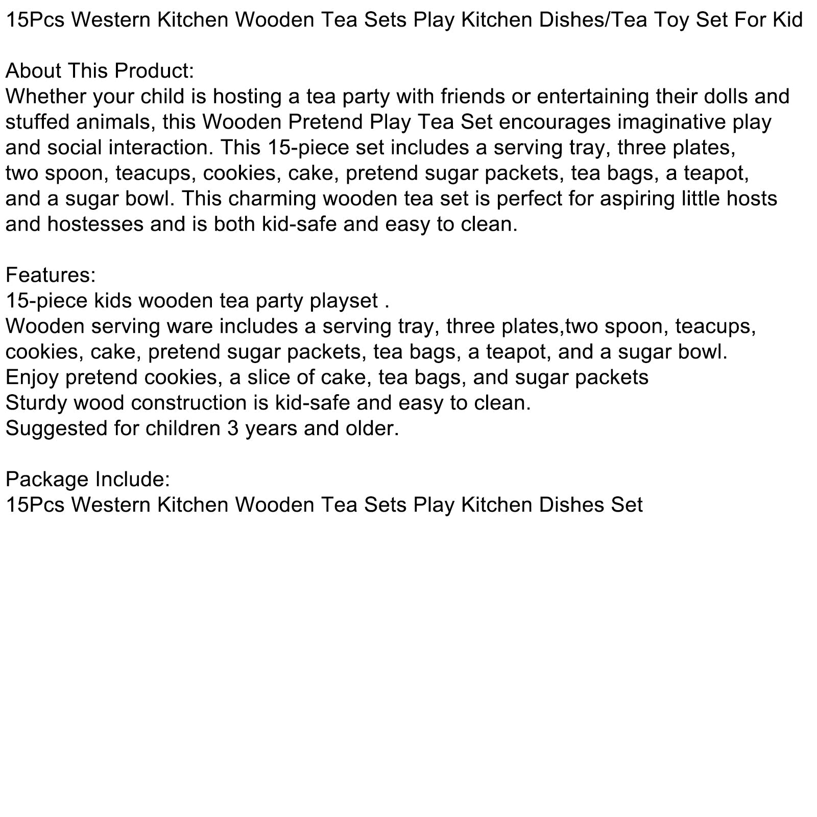 15個セット 西洋キッチン木製ティーセット プレイキッチン食器/子供用ティーおもちゃセット