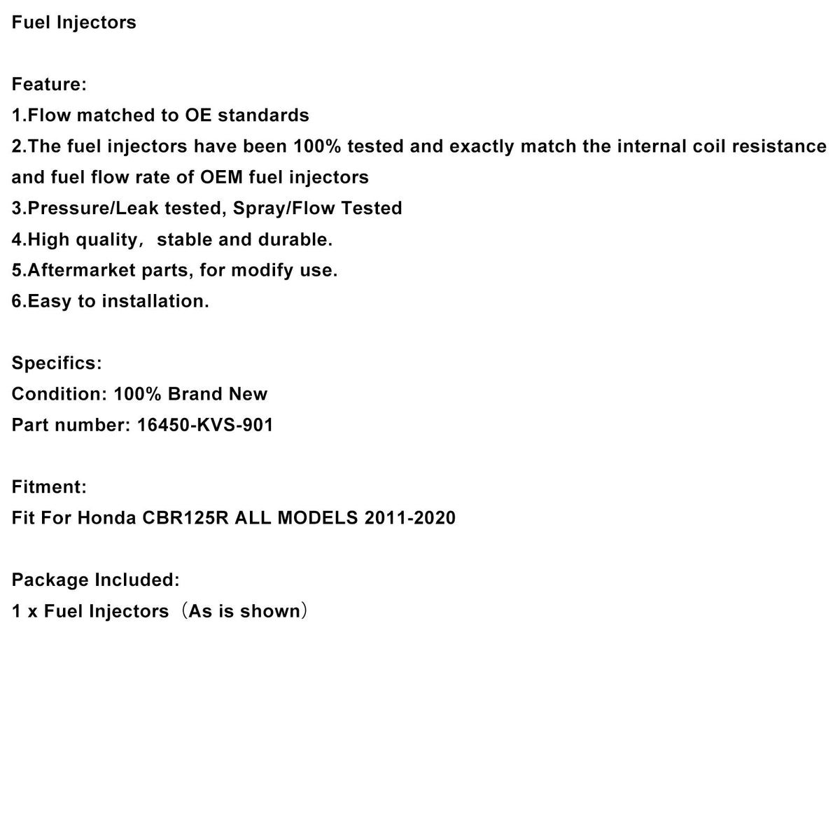 2.燃料インジェクターは100%テストされており、OEM燃料インジェクターの内部コイル抵抗と燃料流量に正確に一致しています。