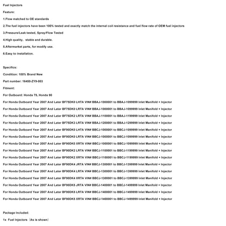 ホンダ BF90D BF75 16450-ZY9-003 に適合する燃料インジェクター