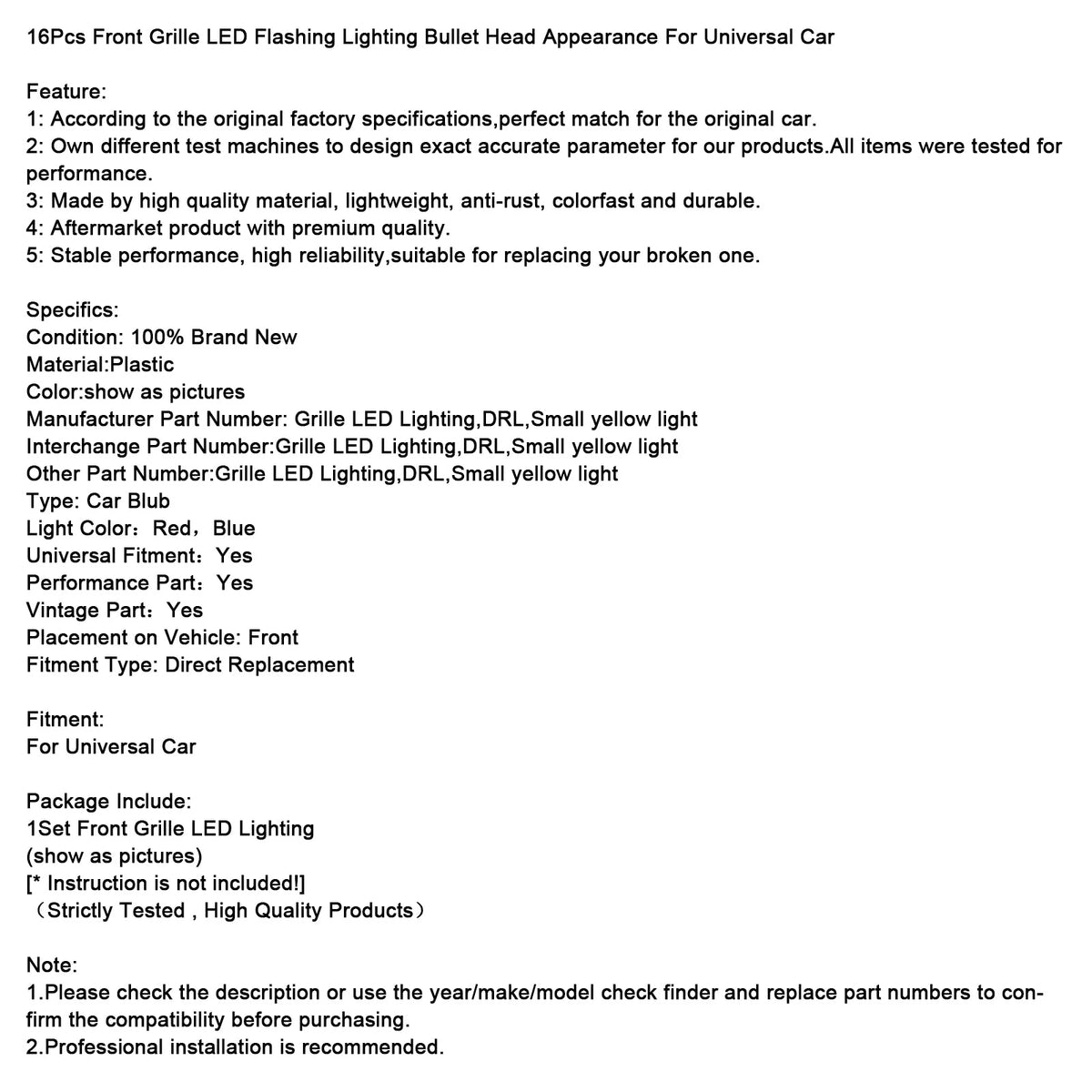 16個入りフロントグリル LED点滅照明 弾丸ヘッド外観 ユニバーサルカー用