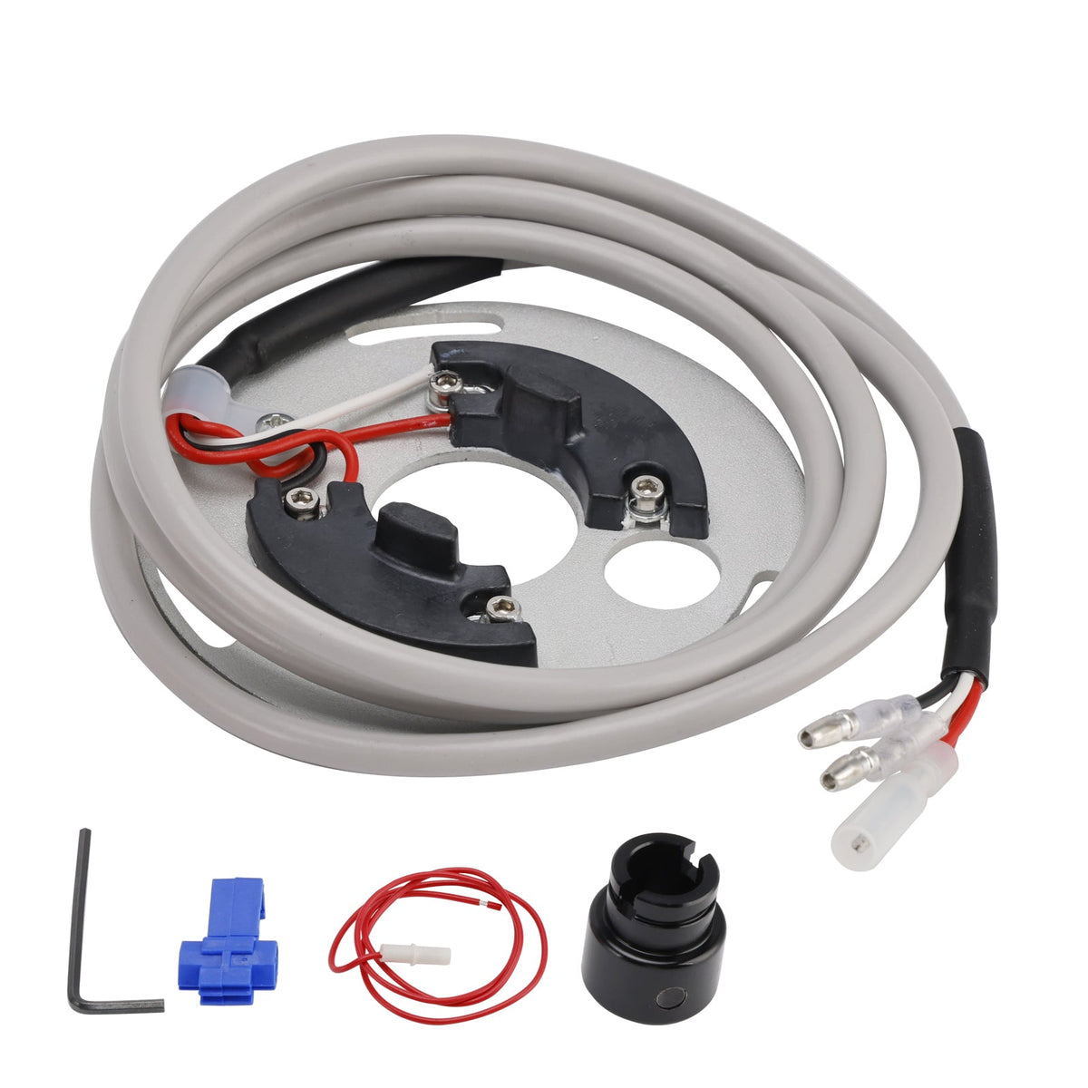 点火カバーの後ろに収納されており、オリジナルの点火アドバンス装置を備えた磁気ローターを使用しているため、工場出荷時の点火進角曲線が維持されます。