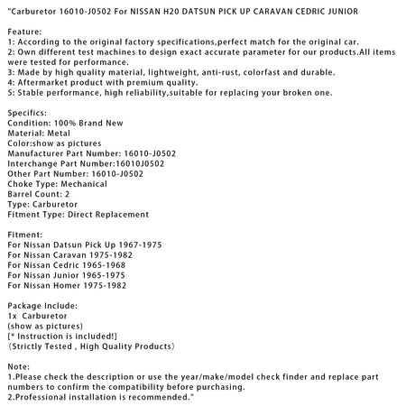 キャブレター 16010-J0502 日産 H20 ダットサン ピックアップ キャラバン セドリック ジュニア用