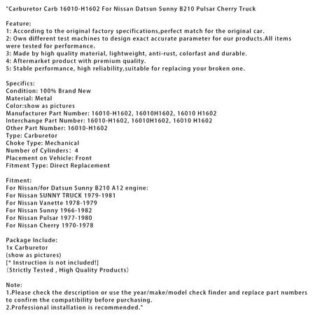 キャブレター キャブ 16010-H1602 日産 ダットサン サニー B210 パルサー チェリートラックに適合