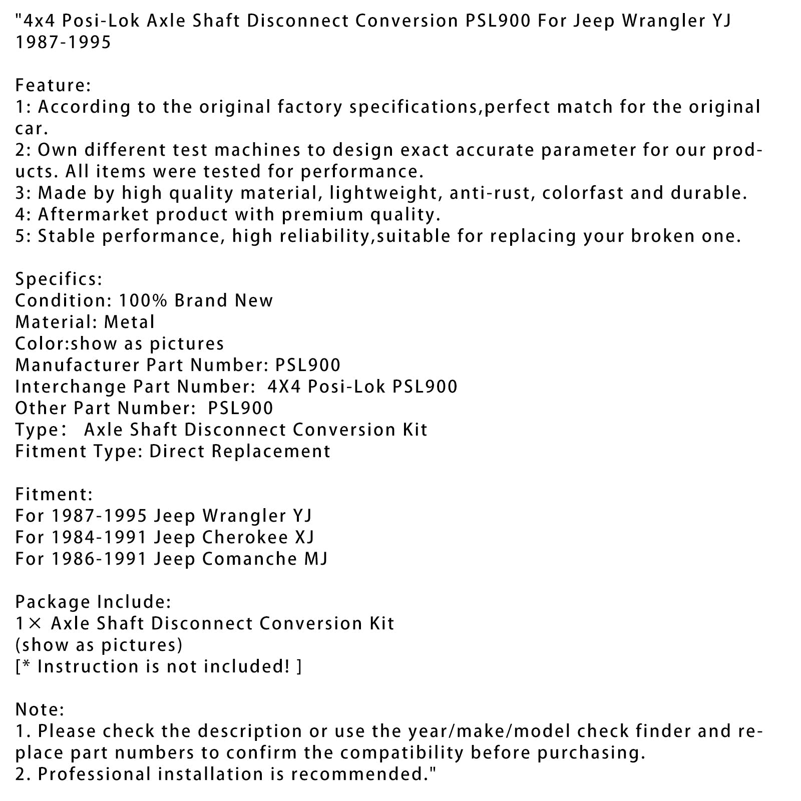 1984-1991 ジープ チェロキー XJ 4x4 Posi-Lok アクスル シャフト ディスコネクト コンバージョン PSL900
