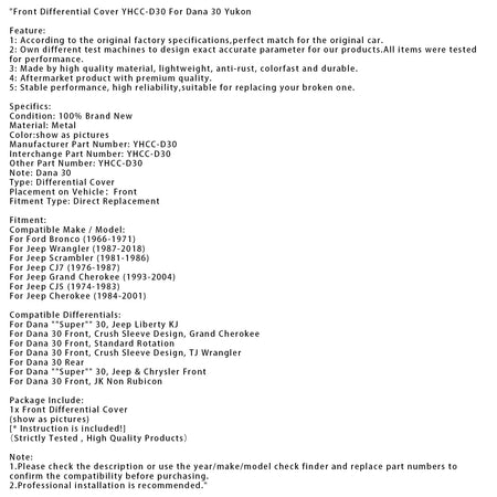 フロントデファレンシャルカバー YHCC-D30 Dana 30 Yukonに適合