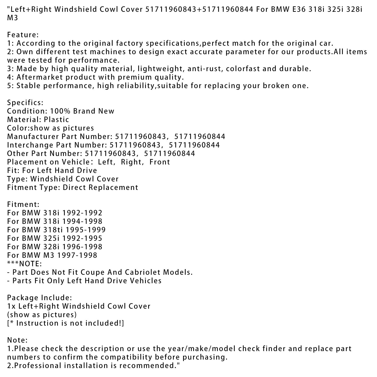 左+右フロントガラスカウルカバー 51711960843+51711960844 BMW E36 318i 325i 328i M3用