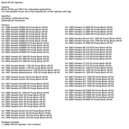 ヤマハ 210/800/1100/1200 用オイルインジェクションポンプのブロックオフ