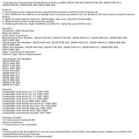 トランスミッションソレノイドキット ホンダ アコード アキュラ MDX 28250-P6H-024 28250-P7W-003 28400-P6H-013 28500-P6H-013 28600-RKE-004 28610-RKE-004