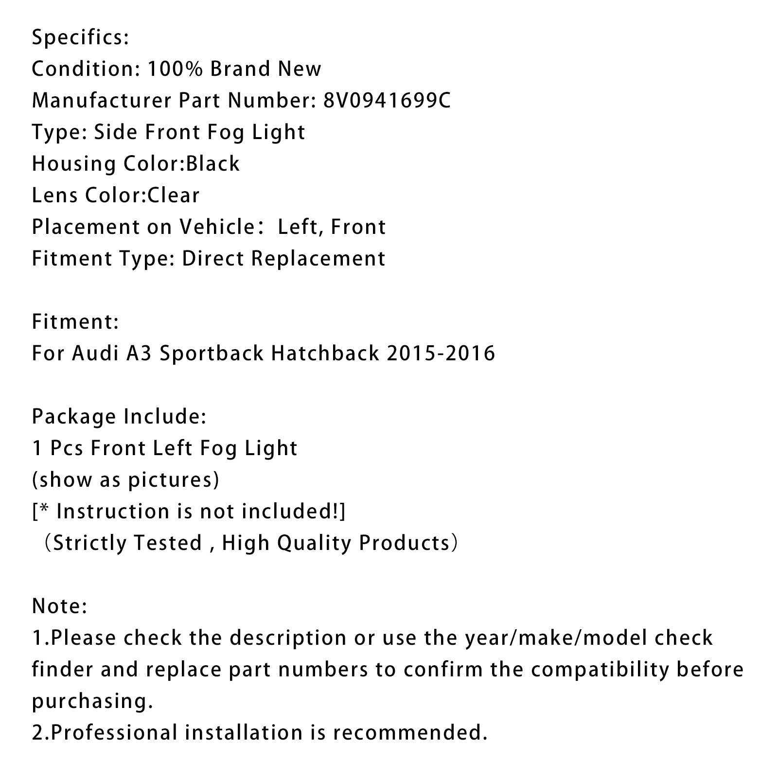 アウディ A3 スポーツバック 8V0941699C 2015-2016 用 フロント左フォグランプ 電球付き 1個
