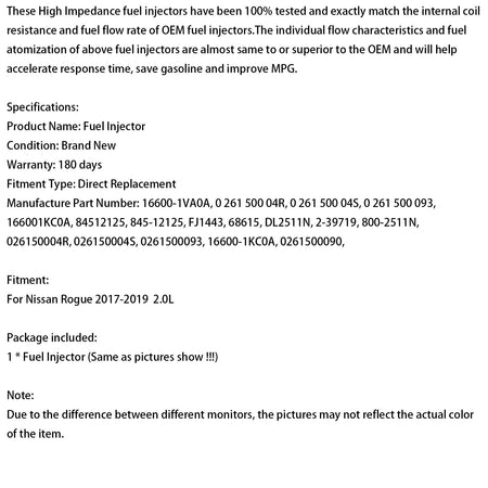 これらの高インピーダンス燃料インジェクターは 100% テスト済みで、OEM 燃料インジェクターの内部コイル抵抗および燃料流量と正確に一致します。上記の燃料インジェクターの個々のフロー特性および燃料の霧化は OEM とほぼ同じかそれ以上であり、応答時間の短縮、ガソリンの節約、MPG の向上に役立ちます。