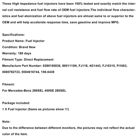 燃料インジェクター 0280150036 メルセデスベンツ 280SEL 450SE 280SEL 4.5L V8 に適合 1個