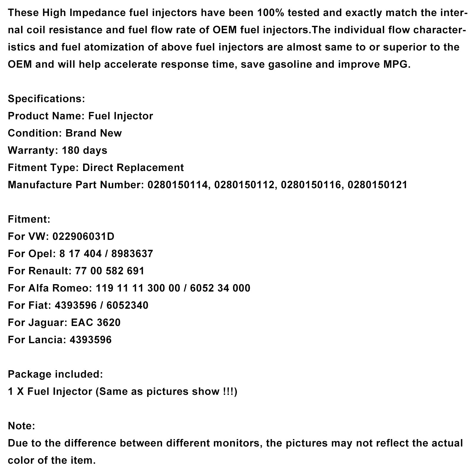 これらの高インピーダンス燃料インジェクターは 100% テスト済みで、OEM 燃料インジェクターの内部コイル抵抗および燃料流量と正確に一致します。上記の燃料インジェクターの個々のフロー特性および燃料の霧化は OEM とほぼ同じかそれ以上であり、応答時間の短縮、ガソリンの節約、MPG の向上に役立ちます。