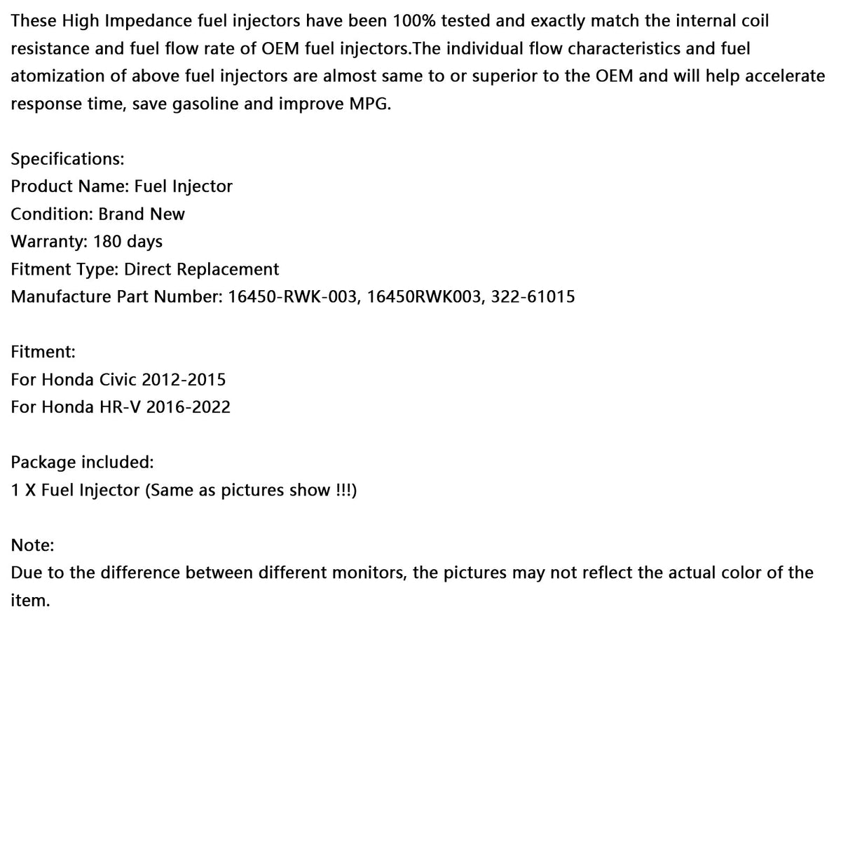 これらの高インピーダンス燃料インジェクターは 100% テスト済みで、OEM 燃料インジェクターの内部コイル抵抗および燃料流量と正確に一致します。上記の燃料インジェクターの個々のフロー特性および燃料の霧化は OEM とほぼ同じかそれ以上であり、応答時間の短縮、ガソリンの節約、MPG の向上に役立ちます。