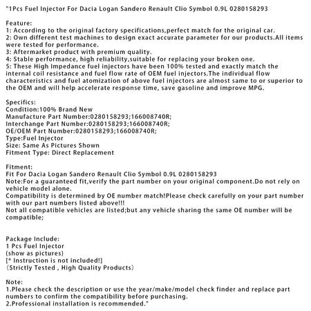Dacia Logan Sandero ルノー クリオ シンボル 0.9L 0280158293 に適合