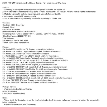 28260-PRP-014 トランスミッションデュアルリニアソレノイド ホンダアコードCRVアキュラに適合