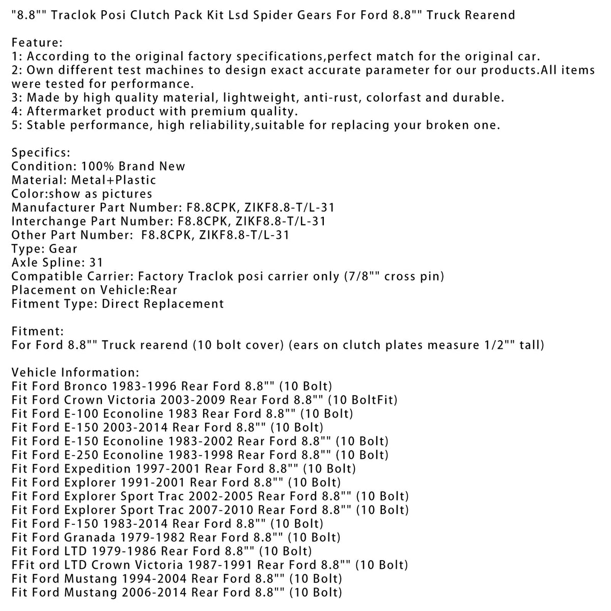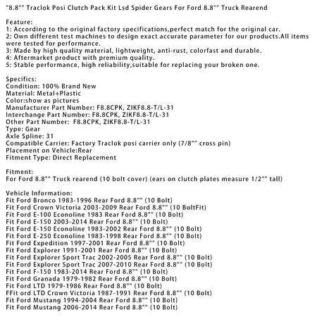 8.8インチ Traclok Posi クラッチ パック キット LSD スパイダー ギア フォード 8.8インチ トラック リアエンドに適合