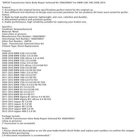 6HP28 トランスミッションバルブボディ修理ソレノイドキット BMW 528i 740i 2008-2014 1068298047 に適合