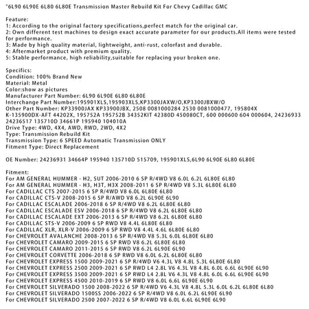 6L90 6L90E 6L80 6L80E トランスミッションマスターリビルドキット(シボレー、キャデラック、GMC用)