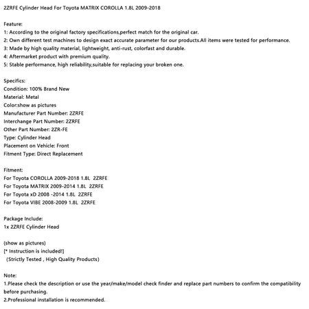 トヨタ マトリックス カローラ 1.8L 2009-2018用 2ZRFE シリンダーヘッド
