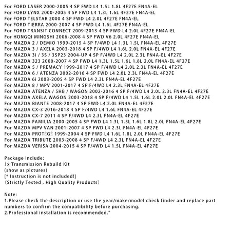 マツダファミリア 2000-2005 4 SP FWD L4 1.3L 1.5L 1.6L 1.8L 2.0L FN4A-EL 4F27E