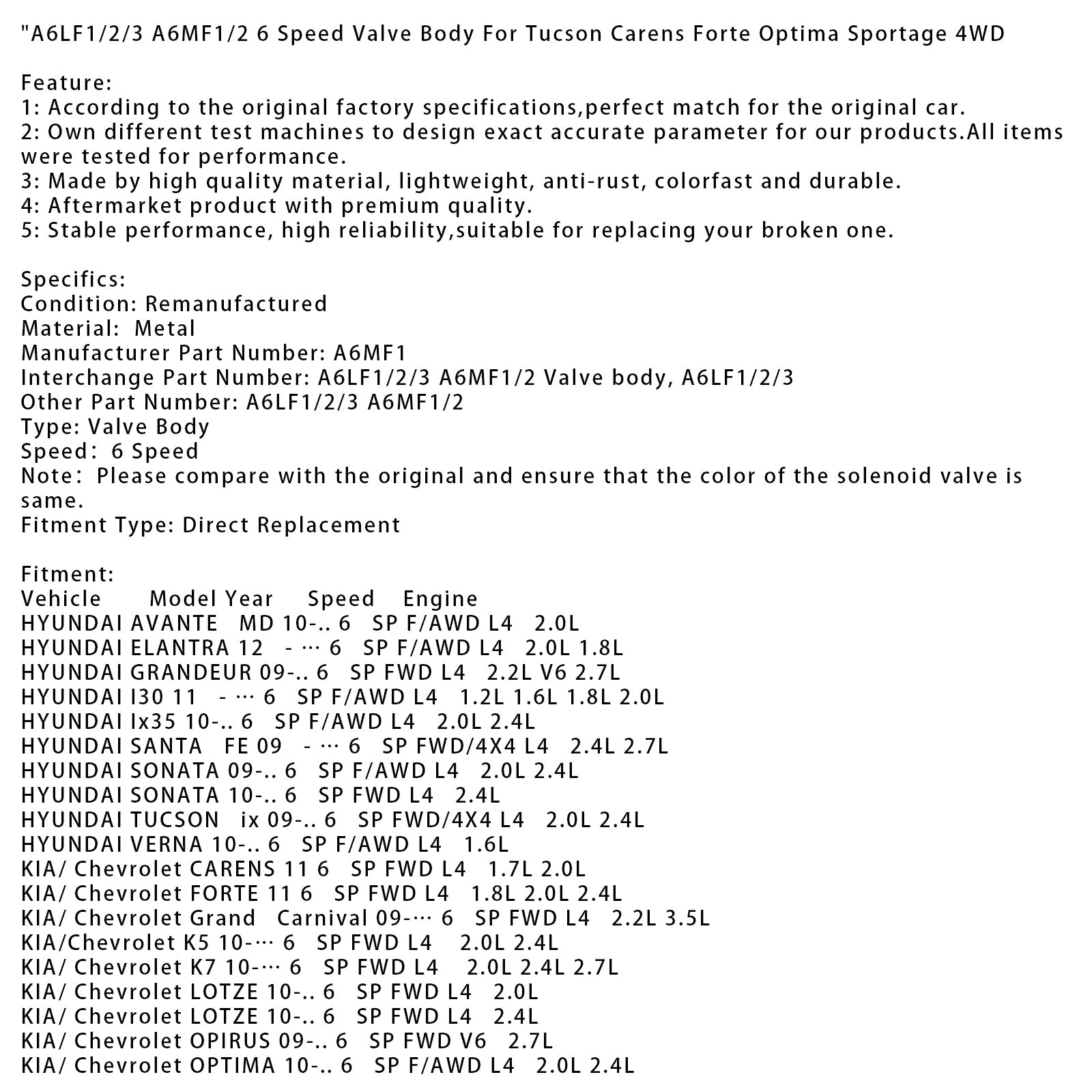 A6MF1/2 6速バルブボディ(ツーソン、カレンズ、フォルテ、オプティマ、スポーテージ 4WD用)