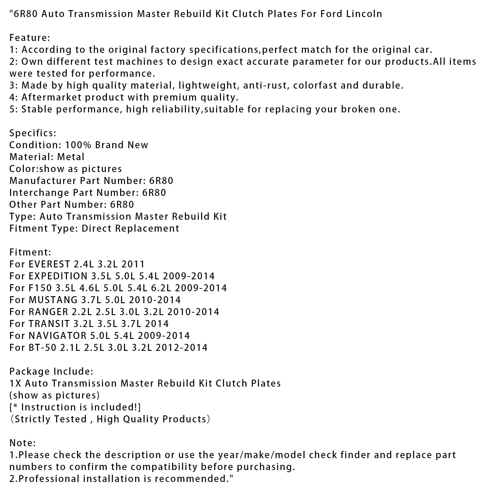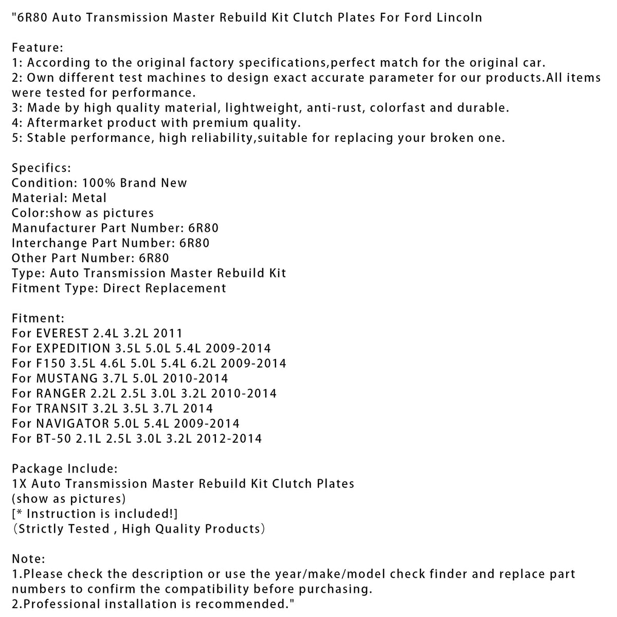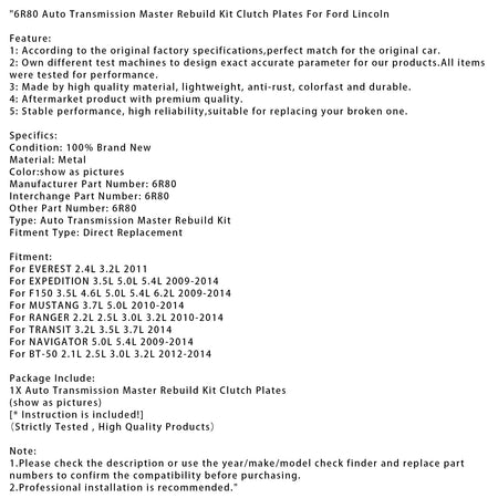 2014年式 トランジット 3.2L 3.5L 3.7L 6R80 オートマチックトランスミッションマスターリビルドキット クラッチプレート
