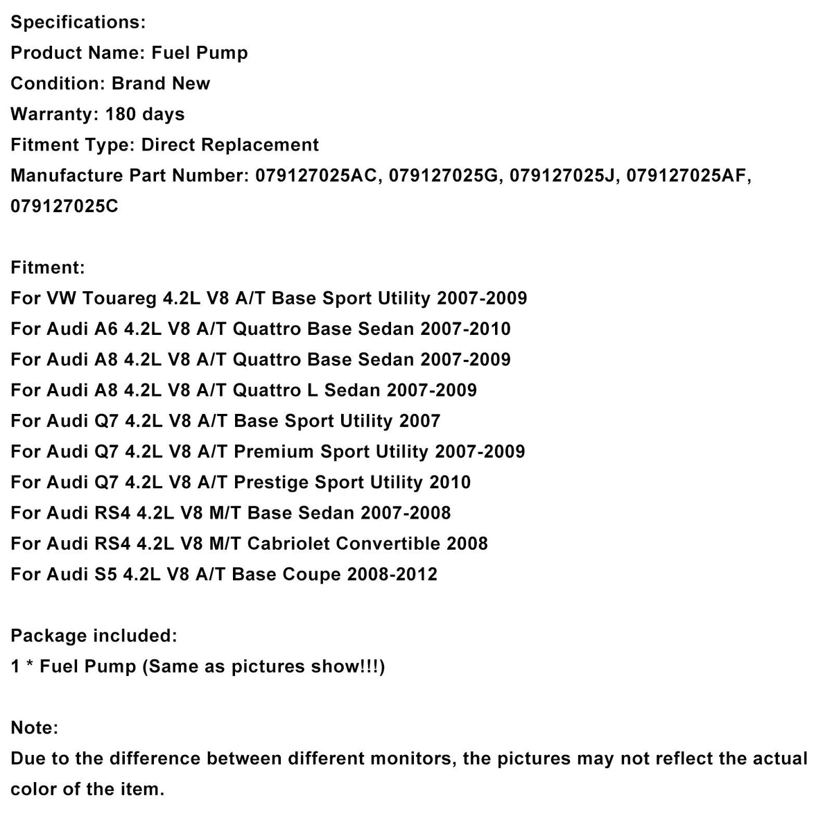 左高圧燃料ポンプ 079127025AC Audi A6 A8 Quattro Q7 RS4 S5に適合