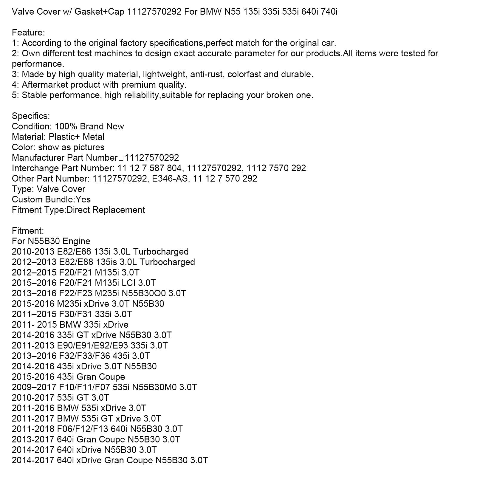 バルブカバー ガスケット+キャップ付き 11127570292 BMW N55 135i 335i 535i 640i 740i用