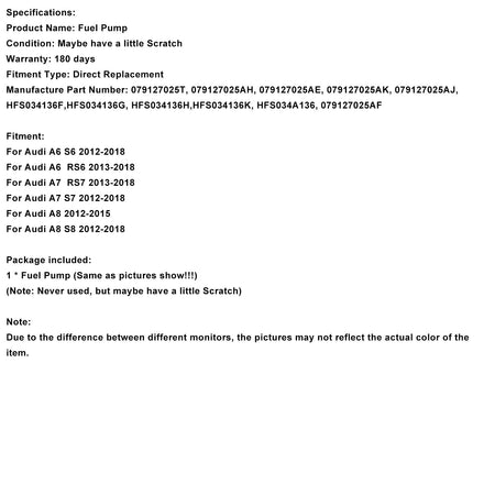 2012-2018 アウディ A8 S8 高圧燃料ポンプ 079127025 HFS034136G