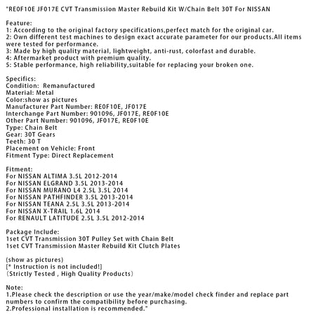 RE0F10E JF017E CVTトランスミッションマスターリビルドキット チェーンベルト付き 30T NISSAN用