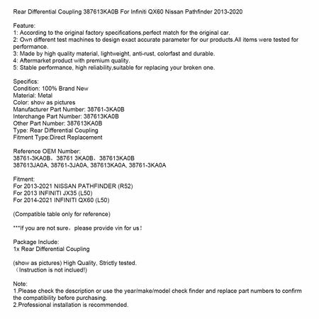 リアディファレンシャルカップリング 387613KA0B インフィニティ QX60 日産 パスファインダー 2013-2020用