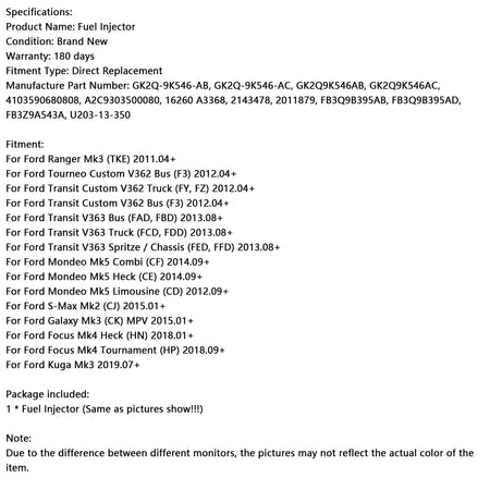 2014.09+ フォード モンデオ Mk5 ヘック (CE) 1PCS 燃料インジェクター GK2Q-9K546-AC 2143478 GK2Q9K546AB FB3Z9A543A
