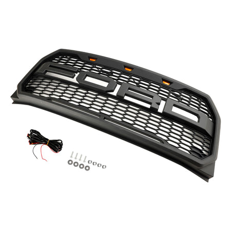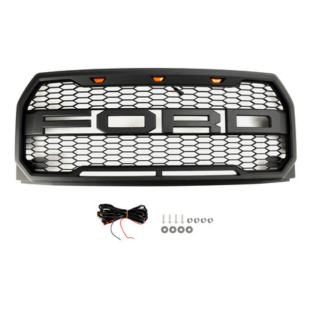 交換用ABSフロントバンパーグリルグリル(LED付き)フォードF150 2015-2017 ラプターに適合