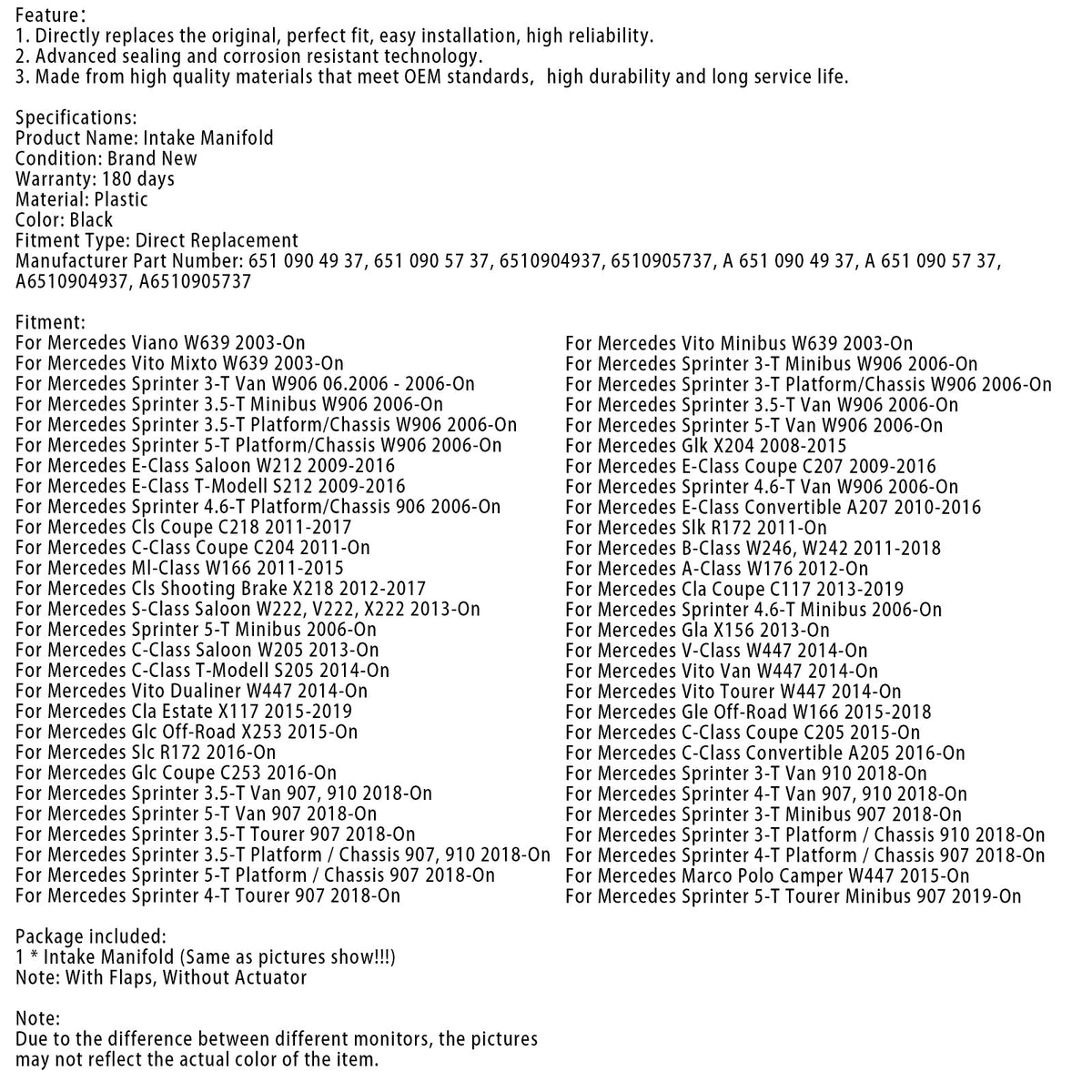吸気インレットマニホールド A6510904937 メルセデスベンツ 2.1 Cdi 2143CCM 2003+に適合