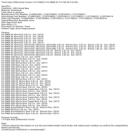 フロントアクスルディファレンシャルキャリア 31517588251 BMW X5 F15 F85 X6 F16 F86用