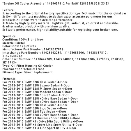 エンジンオイルクーラーアセンブリ 11428637812 BMW 328i 335i 528i X3 Z4用