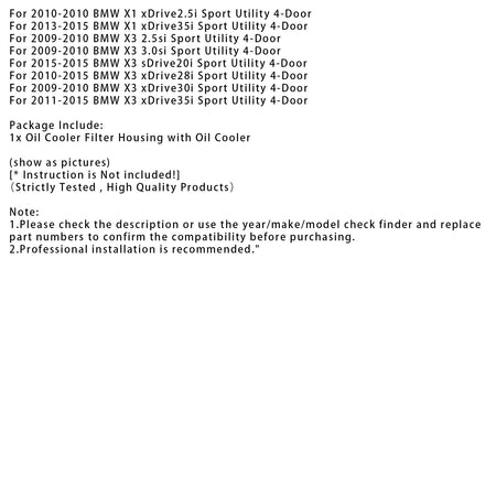 2010-2015 BMW X3 xDrive28i スポーツユーティリティ 4ドア エンジンオイルクーラー オイルフィルターアセンブリ 11428637812