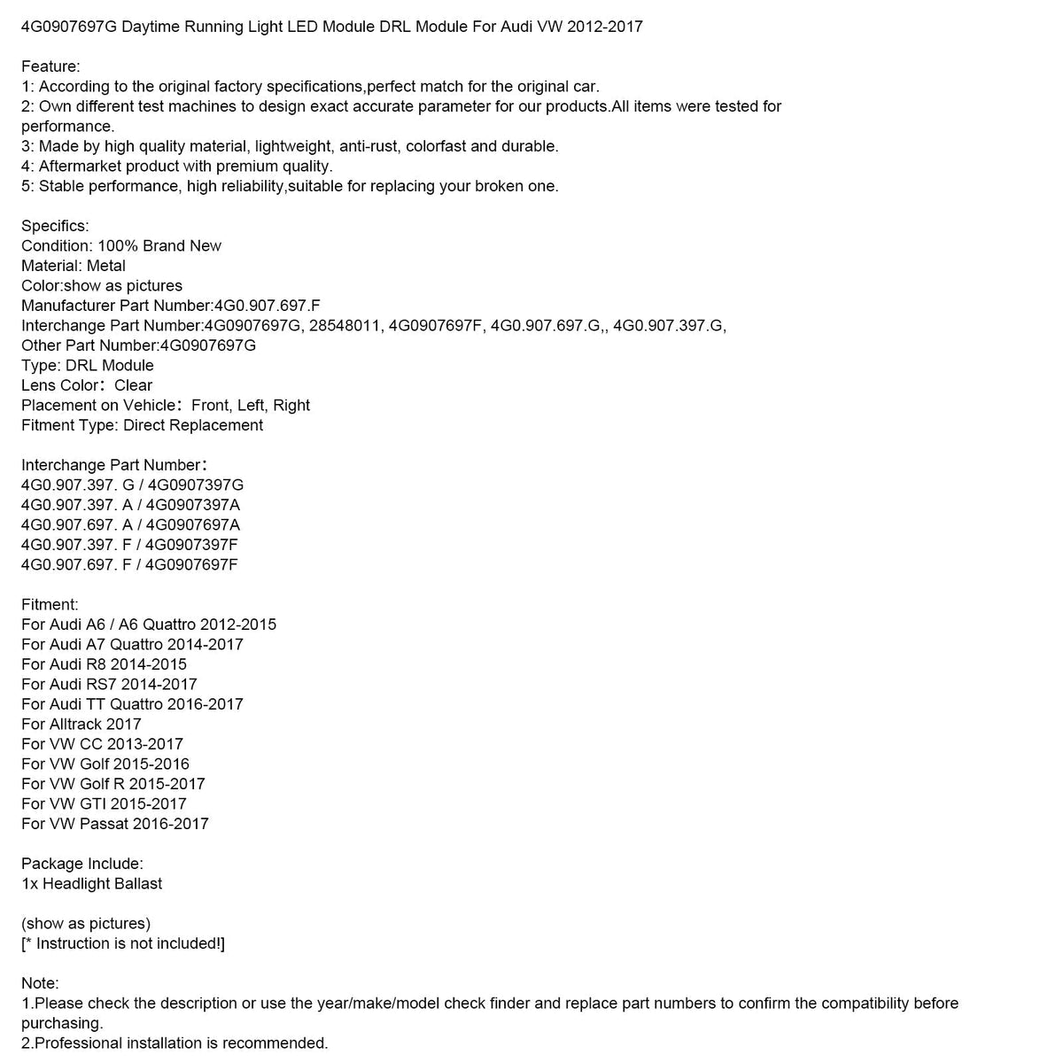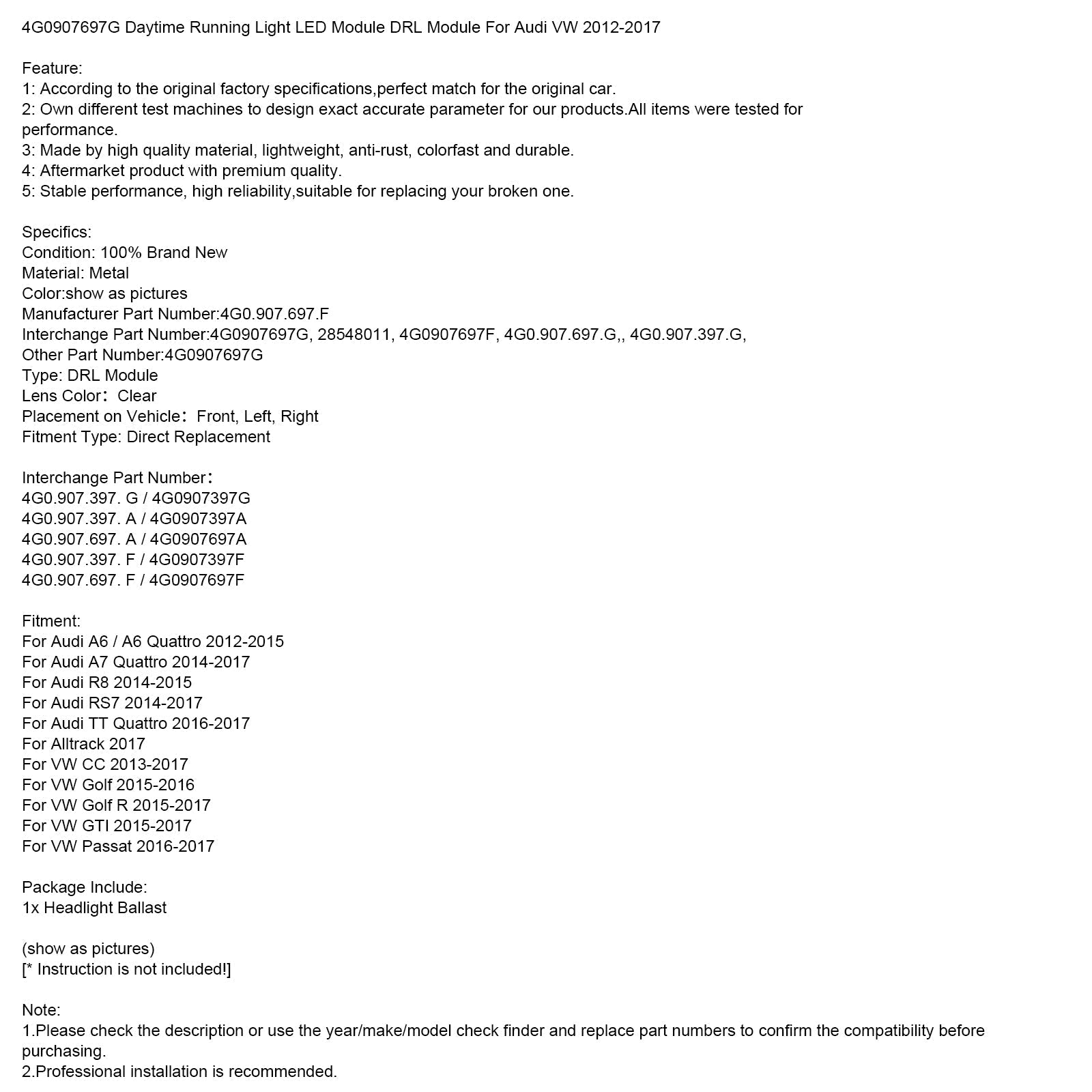 4G0907697G デイタイムランニングライト LED モジュール DRL モジュール Audi VW 2012-2017 に適合