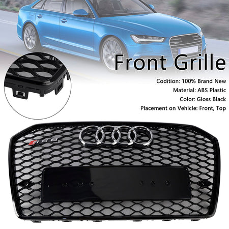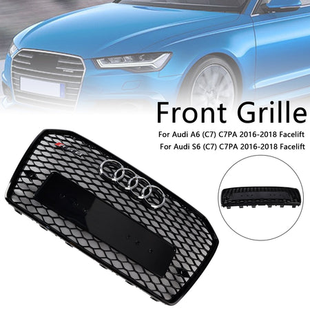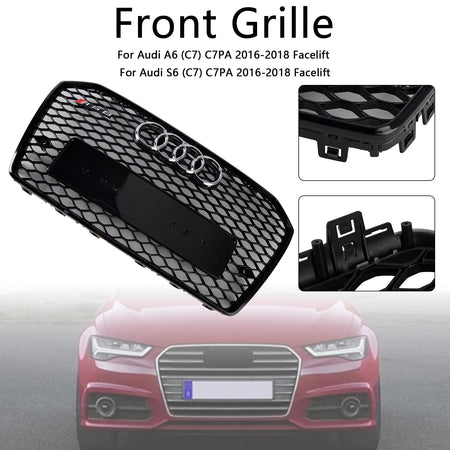 2016-2018 アウディ S6 (C7) C7PA フェイスリフト RS6 スタイル フロント ハニカム メッシュ グリル