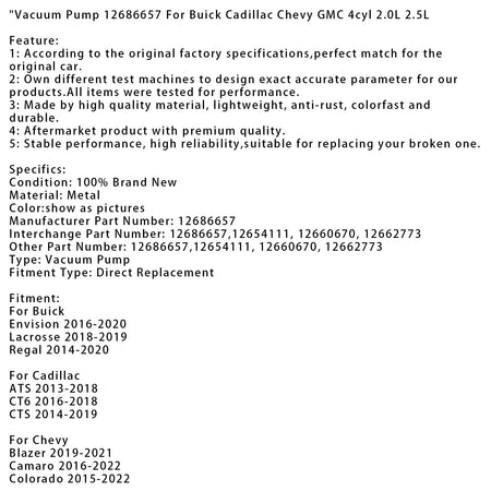 真空ポンプ 12686657 ビュイック キャデラック シボレー GMC 4気筒 2.0L 2.5L用