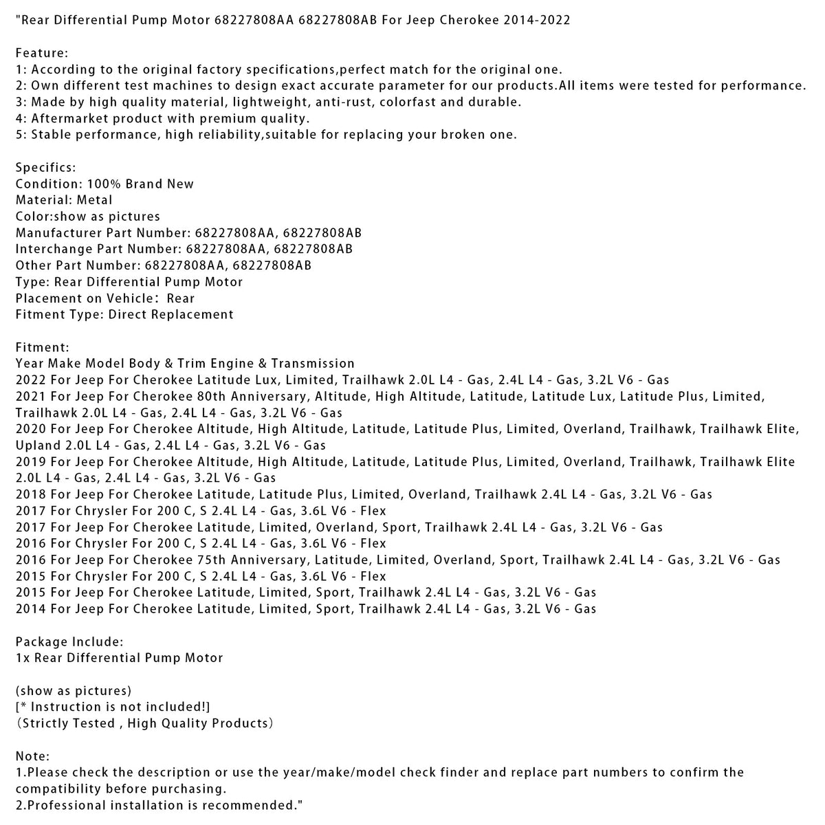 リアデファレンシャルポンプモーター 68227808AA 68227808AB ジープチェロキー 2014-2022用
