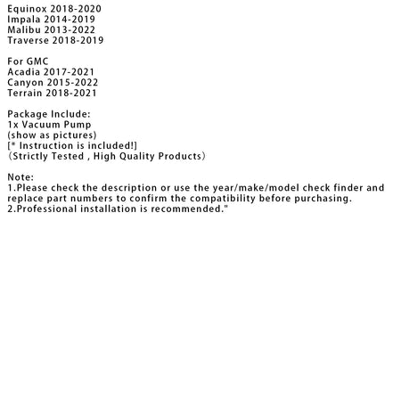 2016-2022 シボレー カマロ 真空ポンプ 12686657 12654111