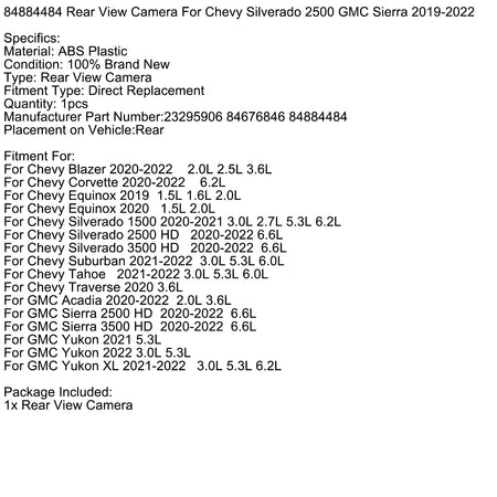 84884484 リアビューカメラ シボレー シルバラード 2500 GMC シエラ 2019-2022用